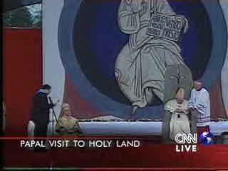 The pope got off his death bed for this event... that upside down cross is a message to every single freemason/Satanist/Lucifer worshipping... freak... that the show is on... Satan has been welcomed into the Holy land... get ready for a false prophet!